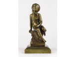 XX. századi művész : Fiú és a béka bronz kisplasztika 14.5 cm