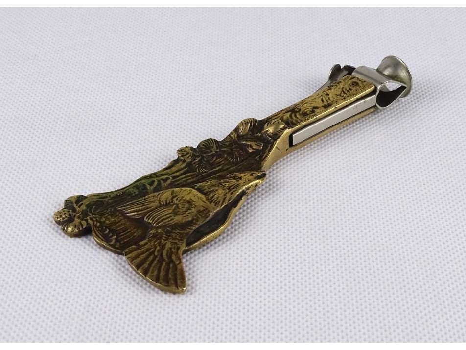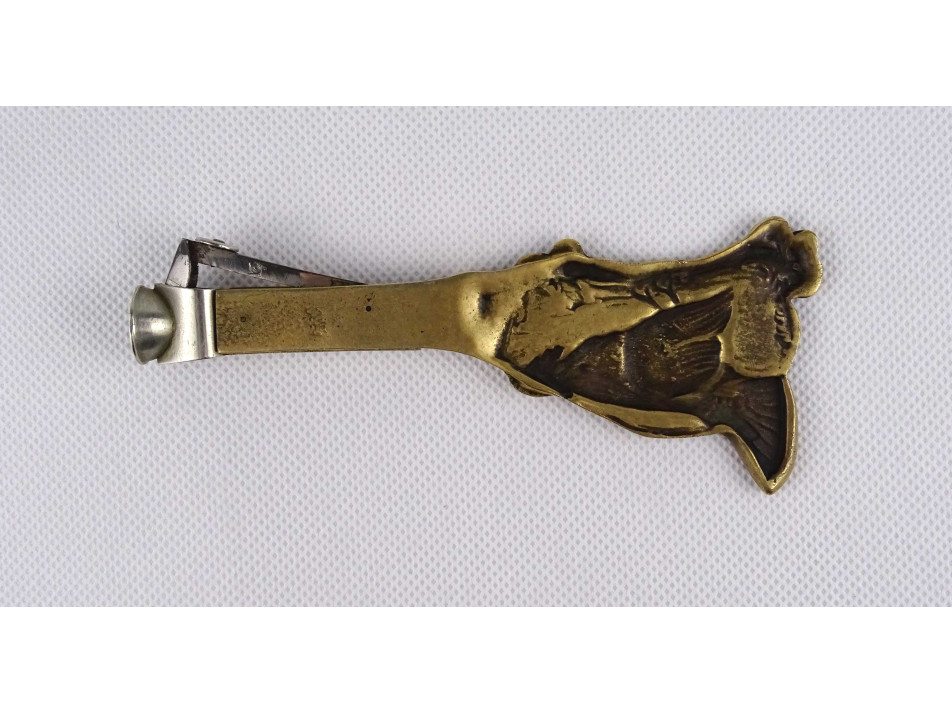 Régi, szép állapotú, jelzett solingeni acél szivarvágó a XX. század első feléből. Bronzból készült markolata fajdkakast ábrázol. Gyűjteménybe illő darab.