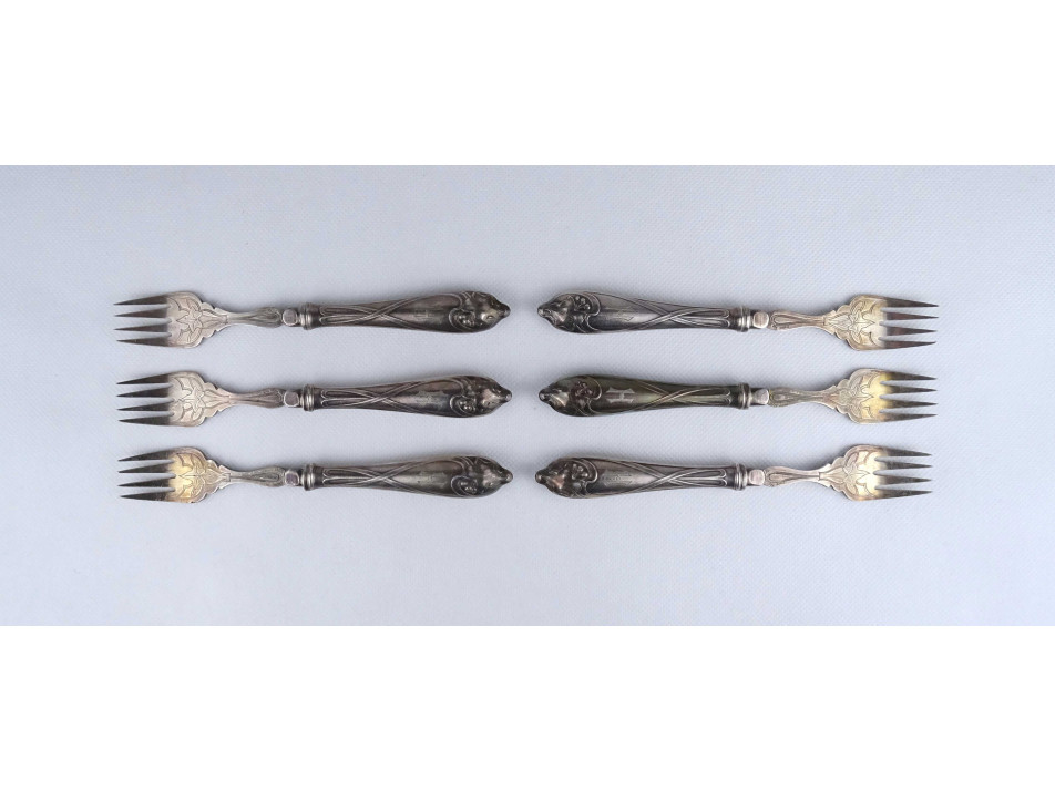 Antik ezüstözött szecessziós WMF evőeszköz készlet halas villa 6 darab