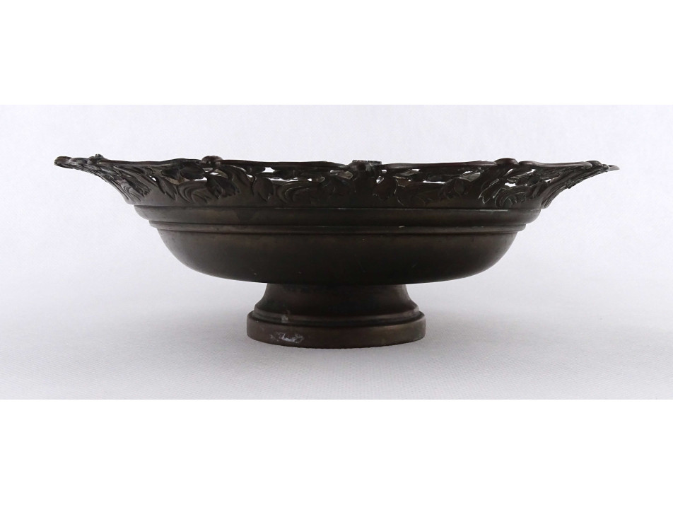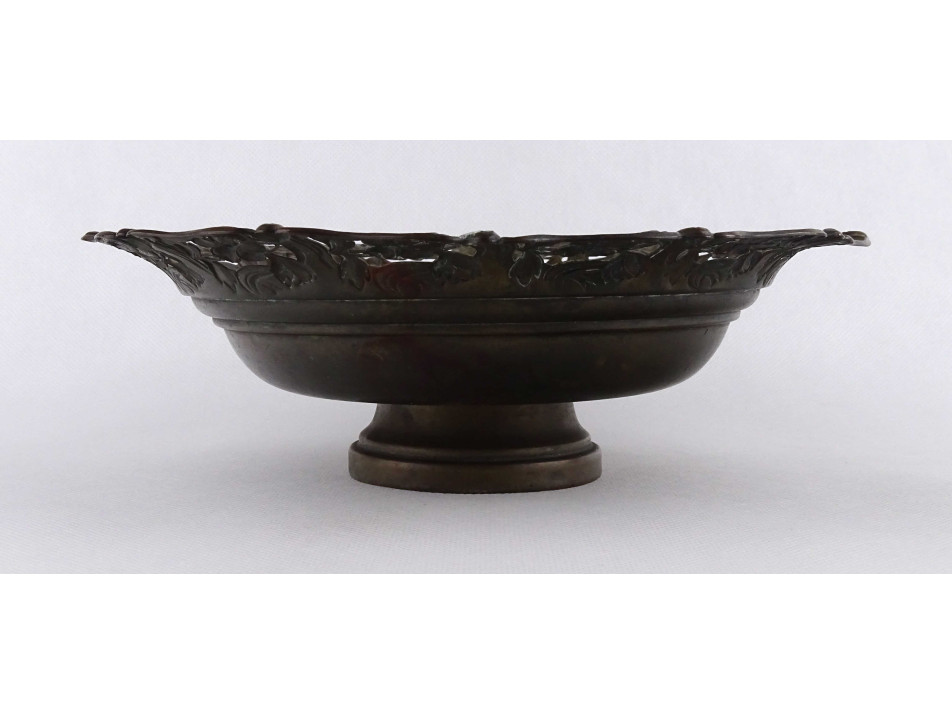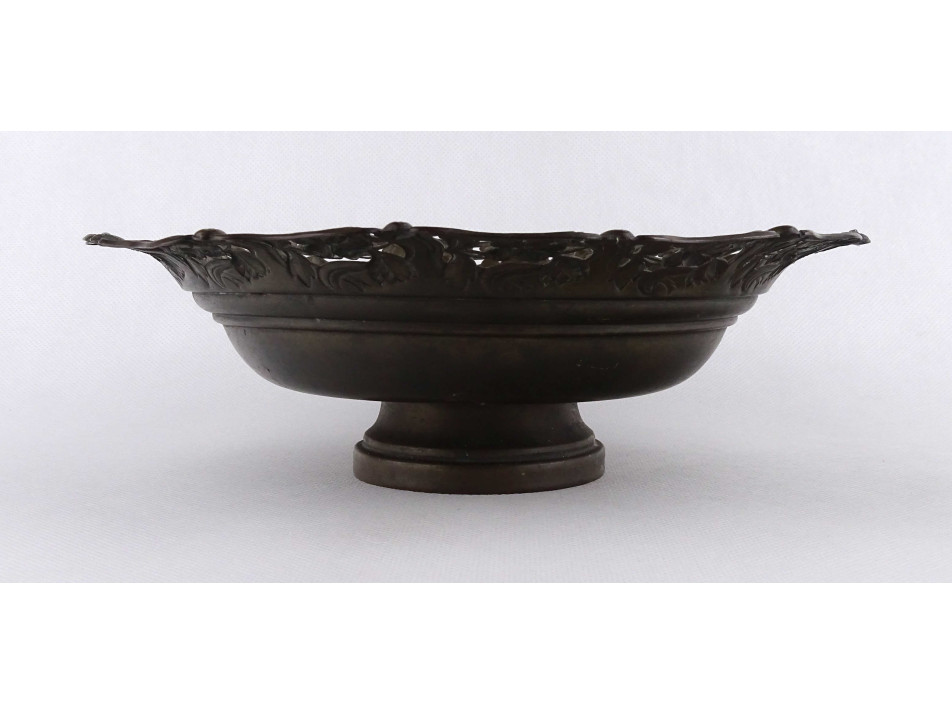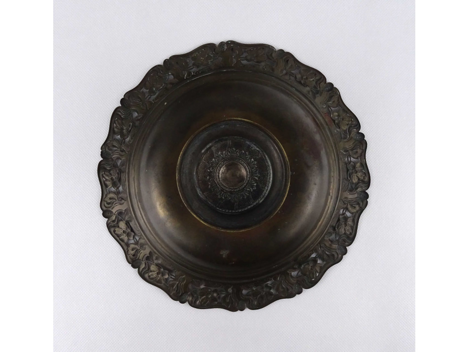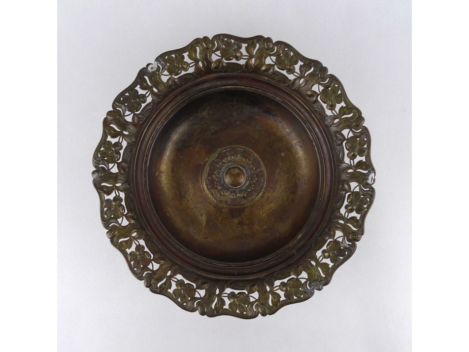 Antik szecessziós réz asztalközép kínáló tál, talpas tál 24.5 cm