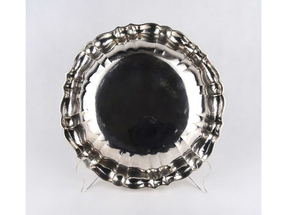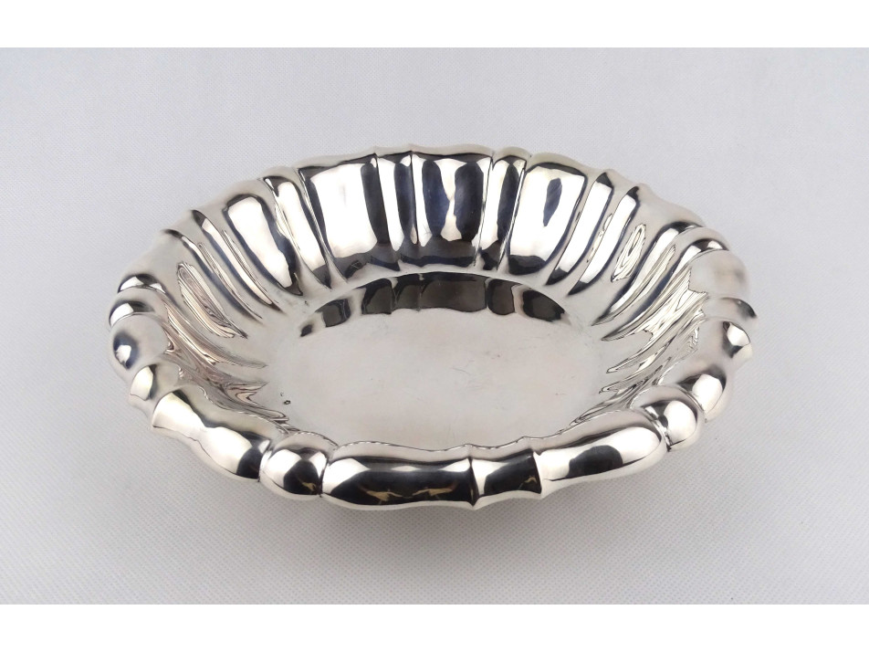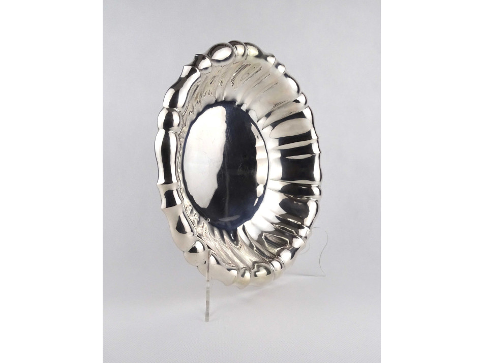 Antik 800-as ezüst, kör alakú bordázott tál, asztalközép 478 g