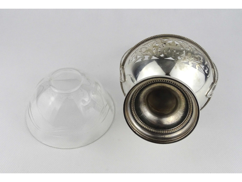 Antik csiszolt üvegbetétes 800-as ezüst kosár asztalközép 219 g