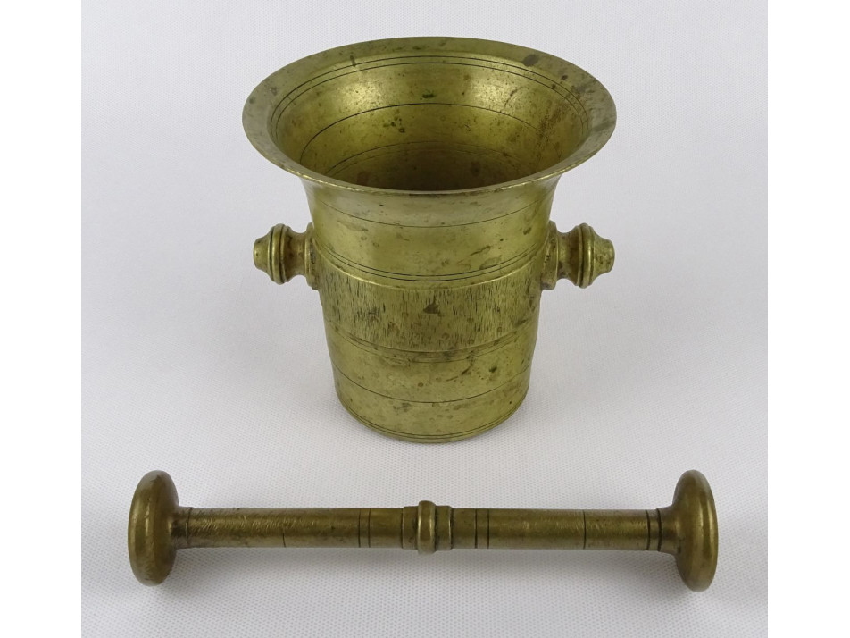 Szép állapotú antik réz mozsár. Dísznek és használatra egyaránt tökéletes. A mozsár alján és a törőn egy-egy méretjelölés található, lásd fotó.