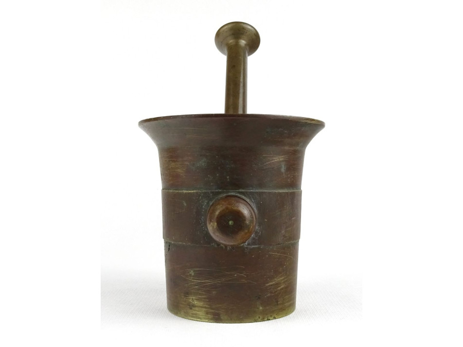 Antik, szép állapotú, nagy méretű gömb füles réz mozsár. Dísznek és használatra egyaránt tökéletes.