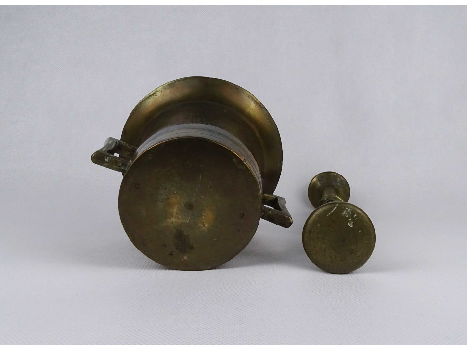 Antik szögletes fülű réz mozsár törővel 2.67 kg