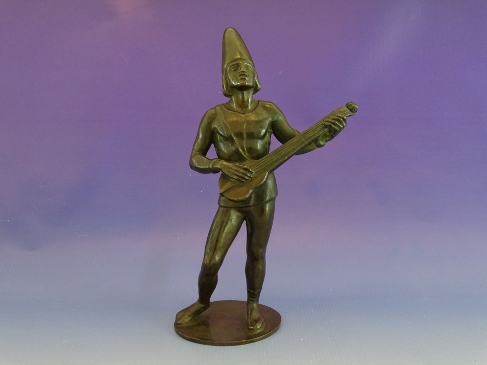 Régi, hibátlan állapotú, jelzetlen bronz szobor. Királyi udvar zenésze, kezében lant.