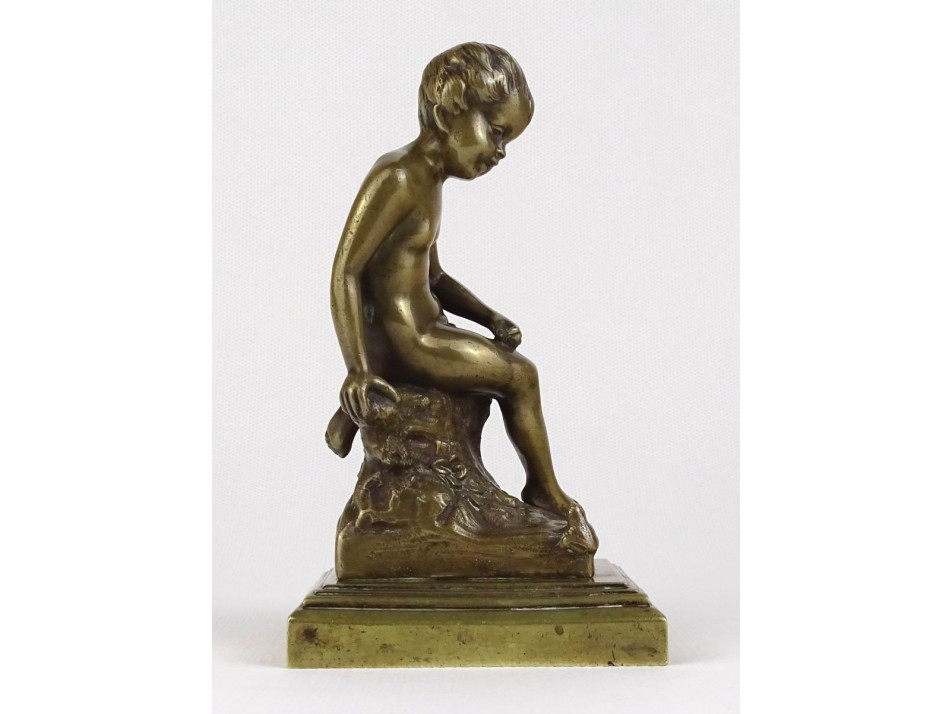 XX. századi művész : Fiú és a béka bronz kisplasztika 14.5 cm