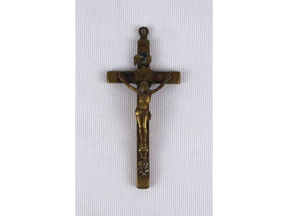 Antik, kisméretű feszület, fali kereszt, fa betéttel.