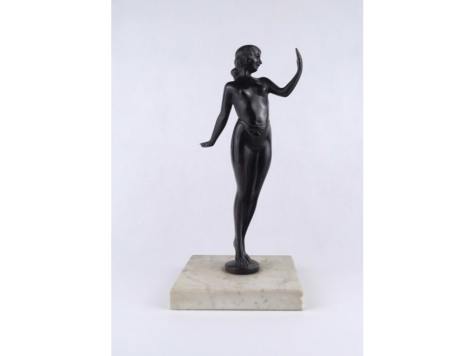 Régi, hibátlan állapotú, jelzetlen szecessziós stílusú egész alakos női akt, bronz szobor márvány talapzaton.