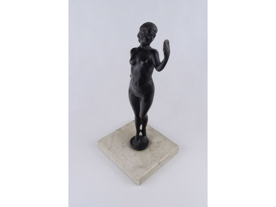 Régi szecessziós női akt, bronz szobor bronz talapzaton 25.6 cm