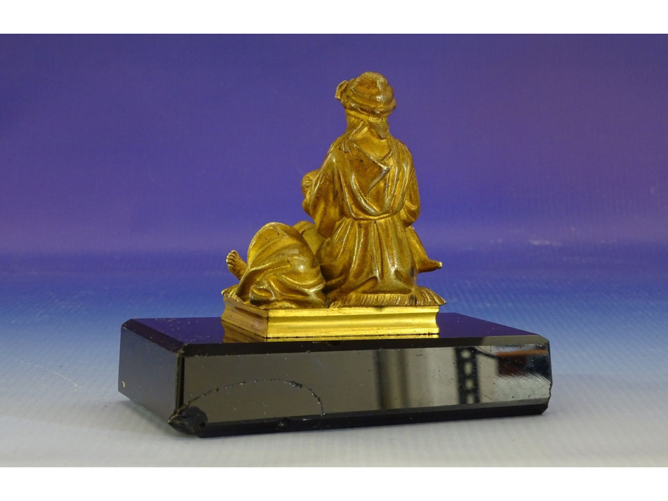 Régi, szépen kidolgozott, tűzarany keleti, arab gyermekét szoptató nő szobor fekete márvány talpon. A szobor hibátlan állapotú, a márvány talapzat kicsikét sérült, lásd fotó.