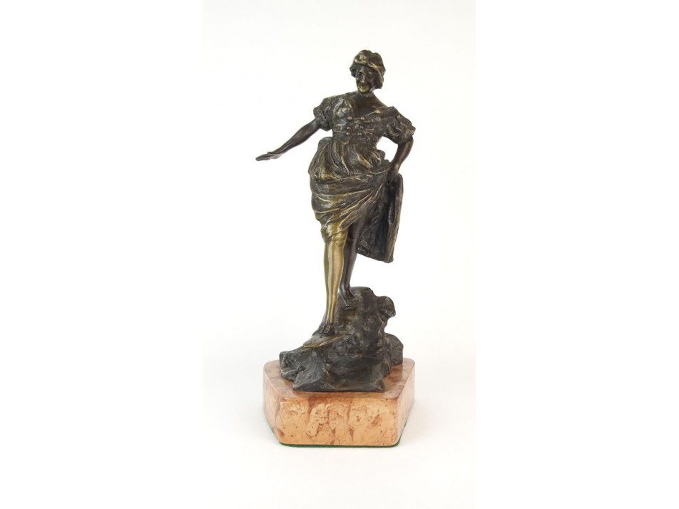 Jelzett bronz szobor, márvány talapzaton. Európai művész, cca 1940 körül.