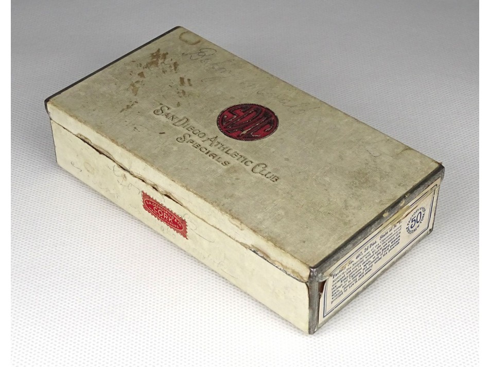 Antik amerikai cigarettás pléhdoboz SDAC San Diego Athletic Club 1933