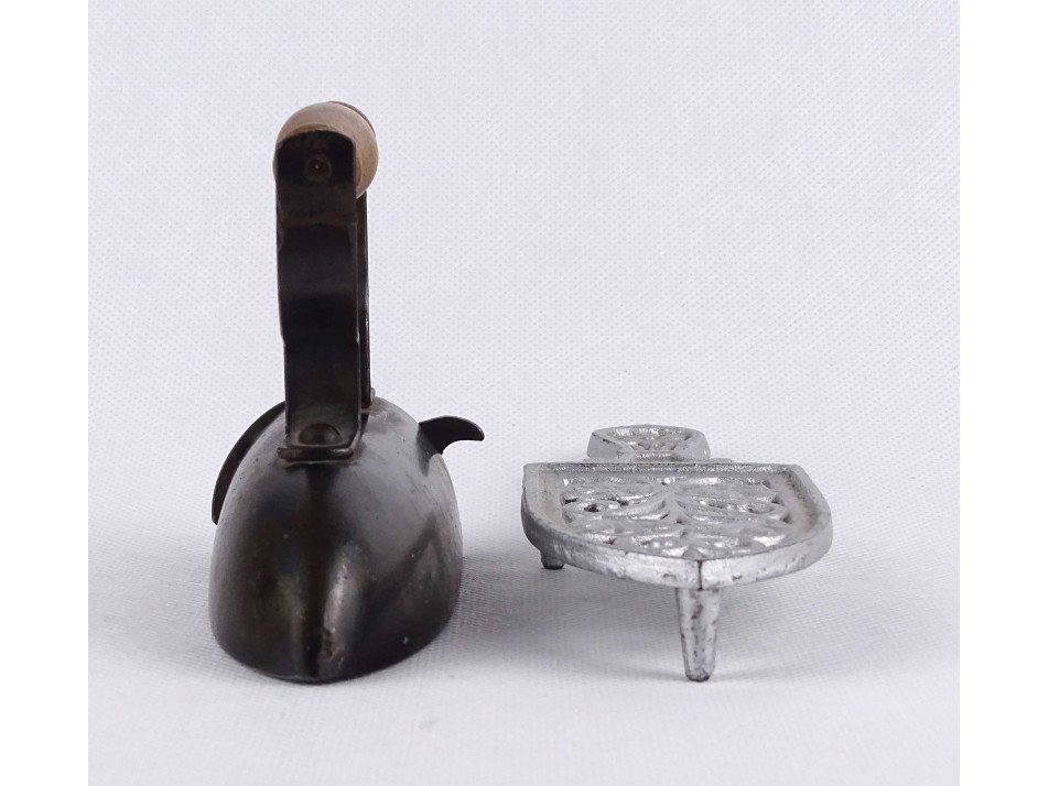 Antik kisméretű vasmagos vasaló öntöttvas állvánnyal