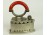 Öntöttvasból készült, szép állapotú, fényesített felületű, kisméretű szenes vasaló, piros színű hajlított fa markolattal. Belső betétje, rácsa is megvan.