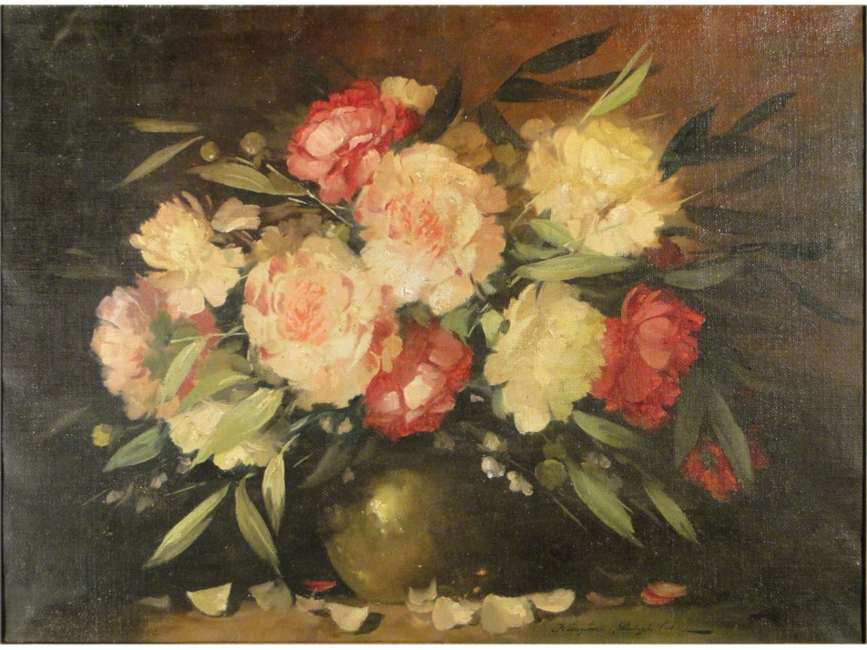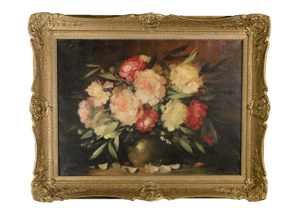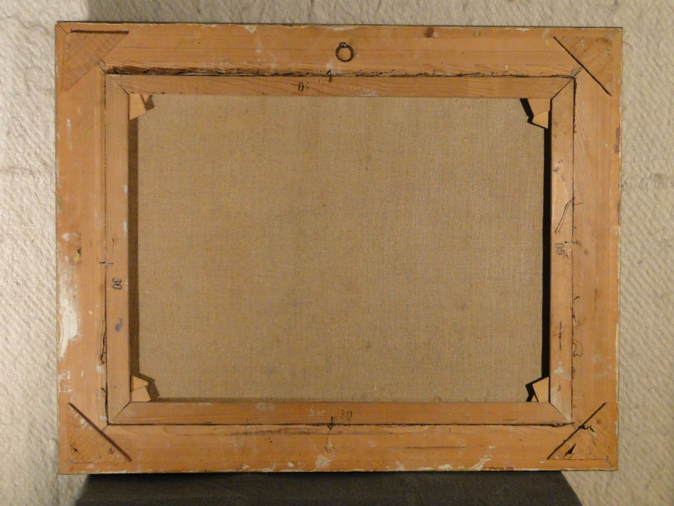 Antik hibátlan állapotú aranyozott blondel keretben jelzett olaj vászon festmény feszítő kereten. Jelezve jobbra lent Kömpöczy Balogh Endre.