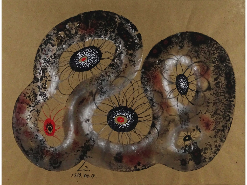 Lehel István : Absztrakt kompozíció - Virágok 1969