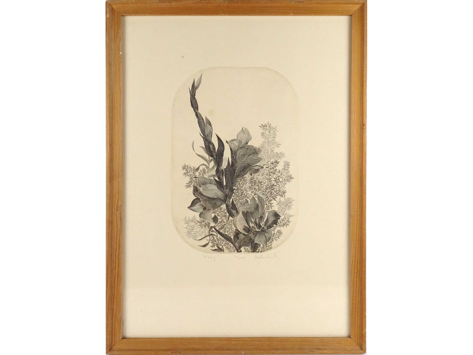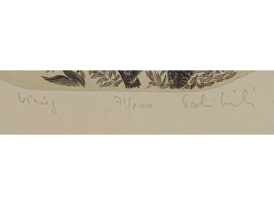 Jelzett, sorszámozott Szabó László rézkarc, szép állapotú léckeretben, üveglap mögött.