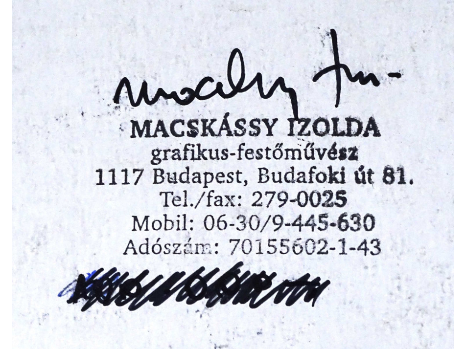 Hátoldalán a művész pecsétje és szignója látható, lásd fotó.