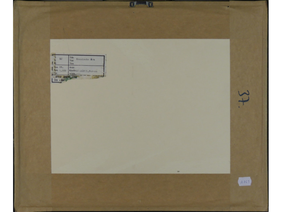 A festmény hátoldalán németországi (NDK-s) kiállítási címke látható.