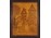 Szép állapotú régi keretben található intarziakép. Sokféle fa felhasználásával készült intarzia munka, kézimunka, kézifestéssel díszítve. Templom előtt beszélgető antik férfi és nő alak, mellette kutya, háttérben gyümölcsfa látható. Akasztási lehetőséggel rendelkezik.