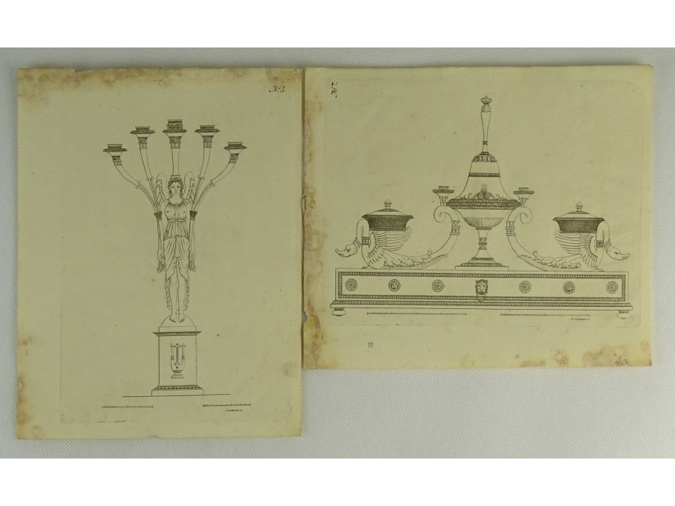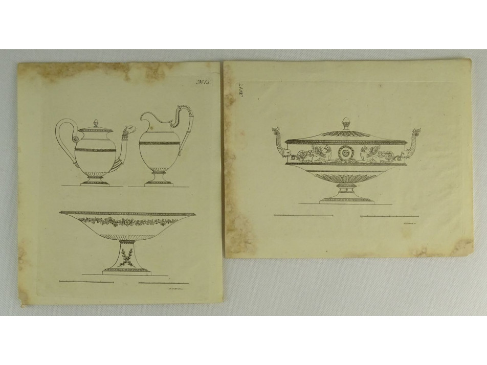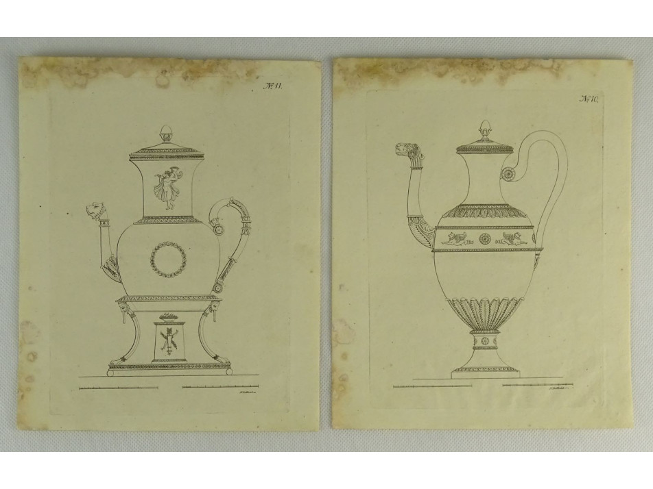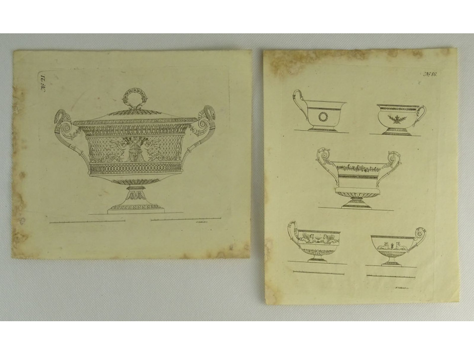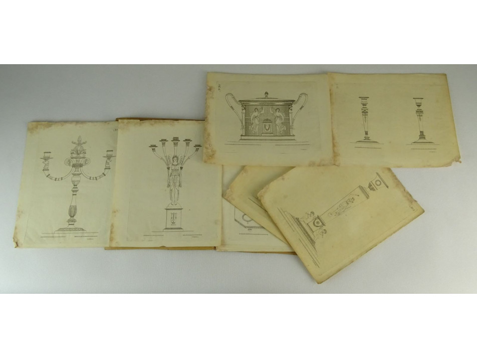 Antik ötvös és ezüstműves munkák tervrajzai, formatervei mappában az 1800-as évek végéről.