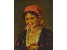 Papír pasztell festmény üveglap mögött, régi ezüst art deco keretben.