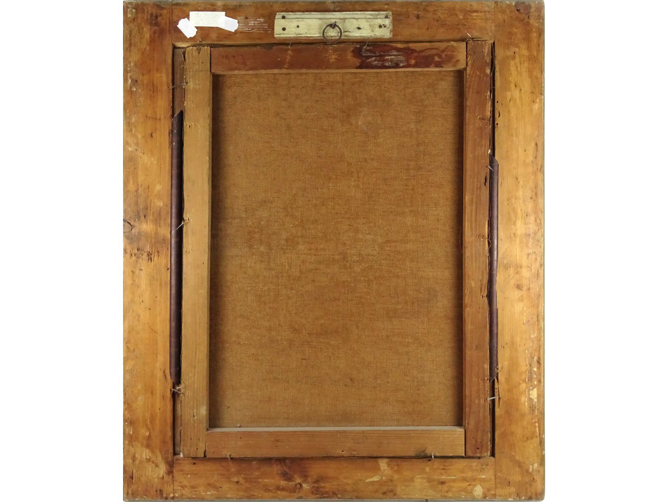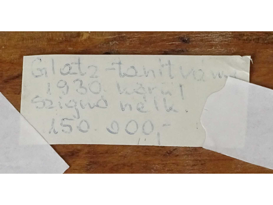 Jelzetlen, olaj vászon festmény, üveglap mögött, hibátlan állapotú aranyozott Blondel keretben. Akasztási lehetőséggel rendelkezik.