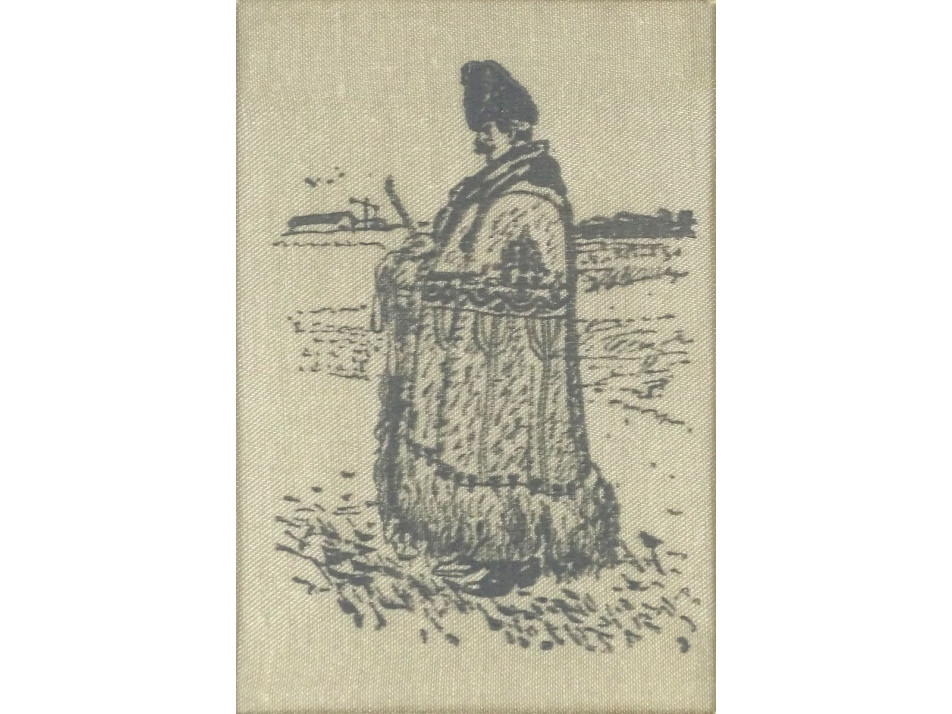 Régi aranyozott keretben, üveglap mögött található, kézzel festett, selyemkép. Hortobágyi juhász. Akasztási lehetőséggel rendelkezik.