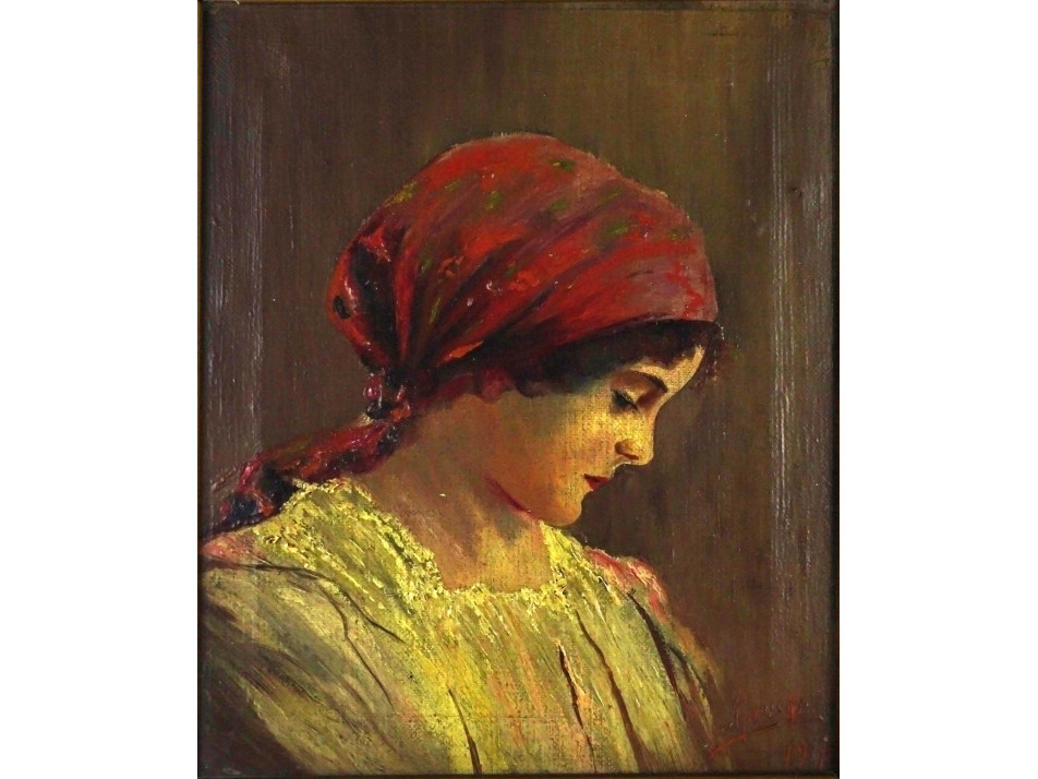 Mariska jelzéssel 1917 datálással : Fejkendős női portré 27 x 22 cm