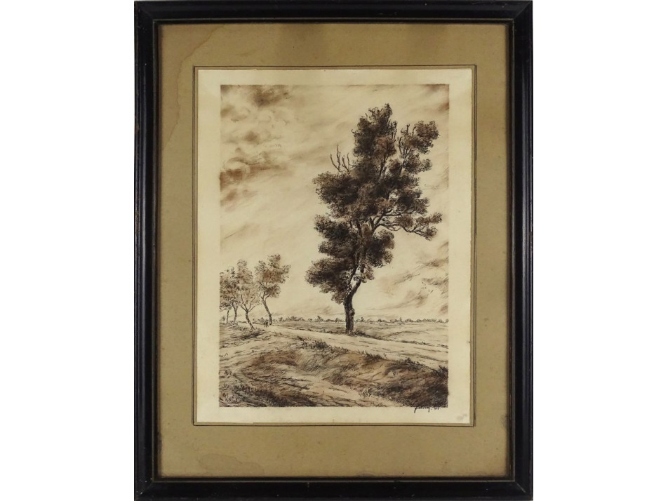 Papír tusrajz üveglap mögött, régi fekete keretben. Akasztási lehetőséggel rendelkezik.