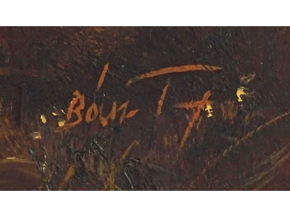 Olaj karton festmény , hibátlan állapotú, újszerűi arany keretben.