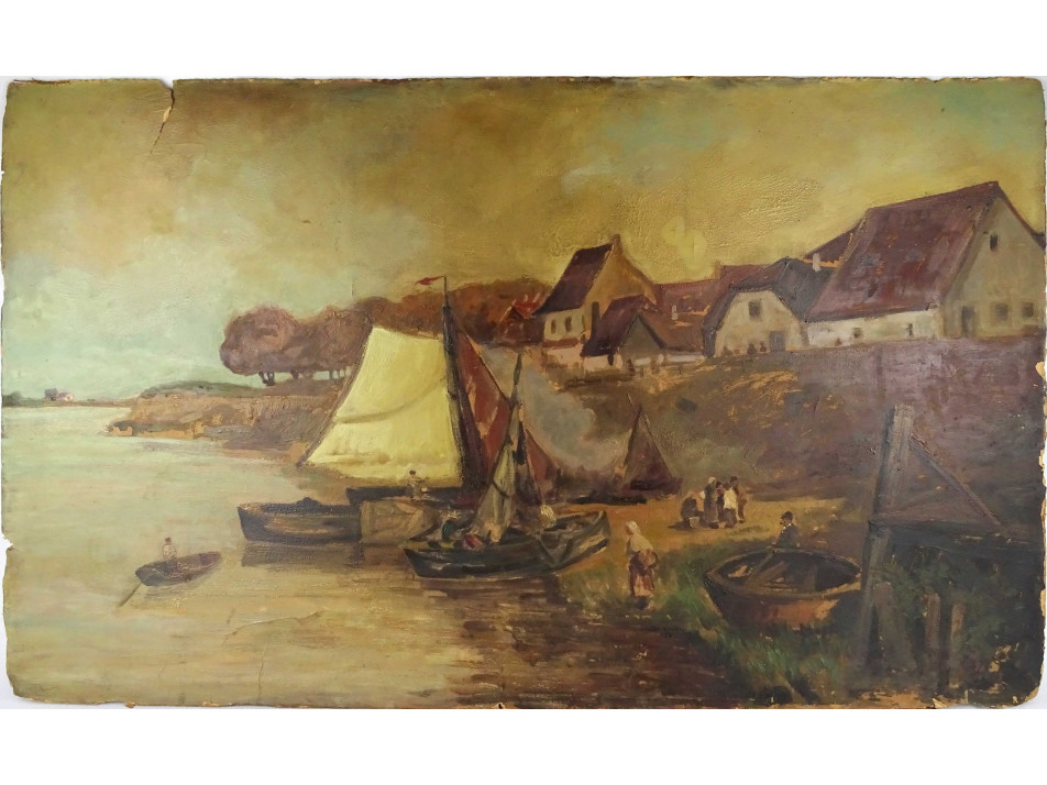 Ismeretlen festő : Folyóparti életkép 98.5 x 59 cm