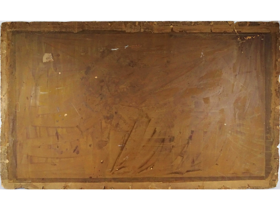 Régi, jelzés nélküli olaj karton tájkép, festmény, keret nélkül. Hordozó karon szélein sérült, szakadt.