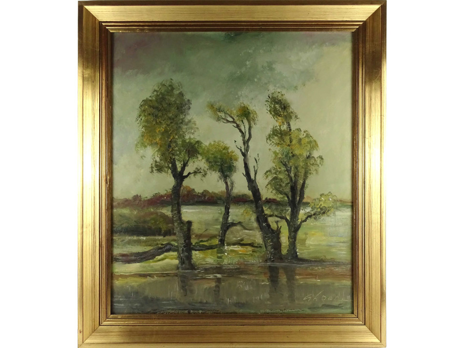 Olaj farost festmény, tájkép hibátlan állapotú aranyozott keretben. Azonnal falra akasztható, ajándékozható állapotban.