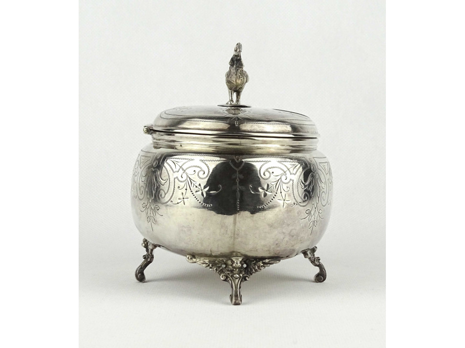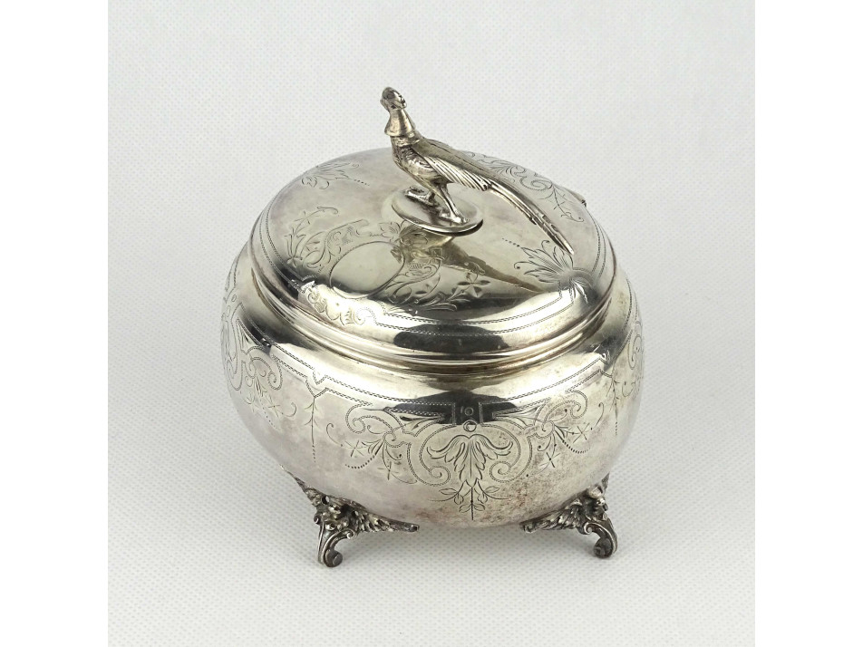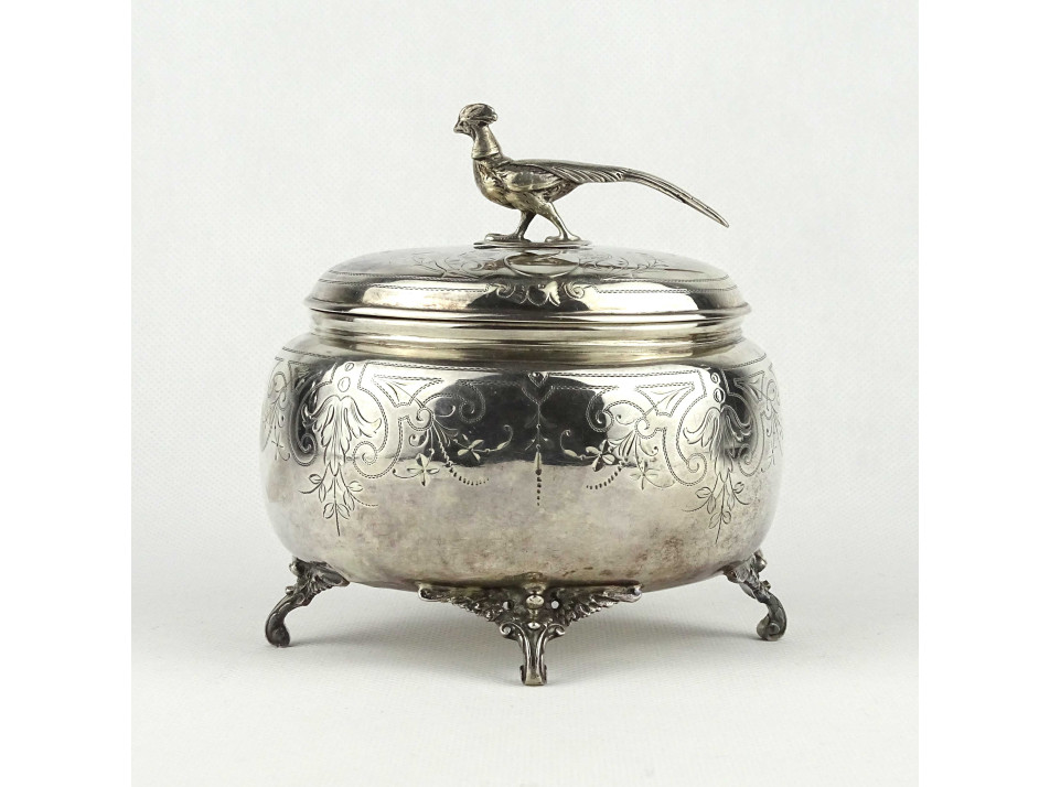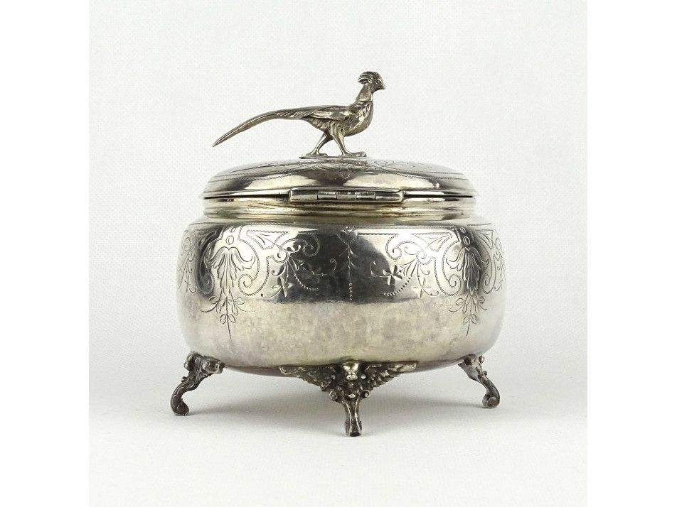 Antik 800-as ezüst fácános fedeles bonbonier 302 g