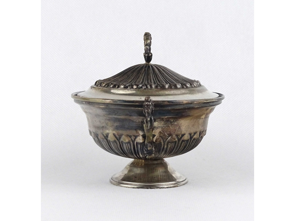 Régi 800-as finomságú antik formavilágú olasz ezüst fedeles bonbonier 175 g