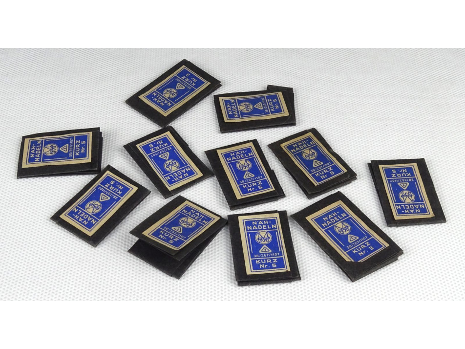 Eredeti csomagolásában található 11 papírcsomagolású varrótű csomag, több mint 100 darab.
