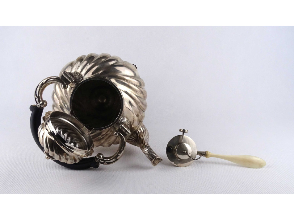 Antik német 800-as ezüst teás kanna aljával 1575 g