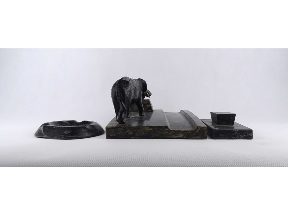 Fekete színű elefántos íróasztali készlet, kalamáris tapper és hamutartó