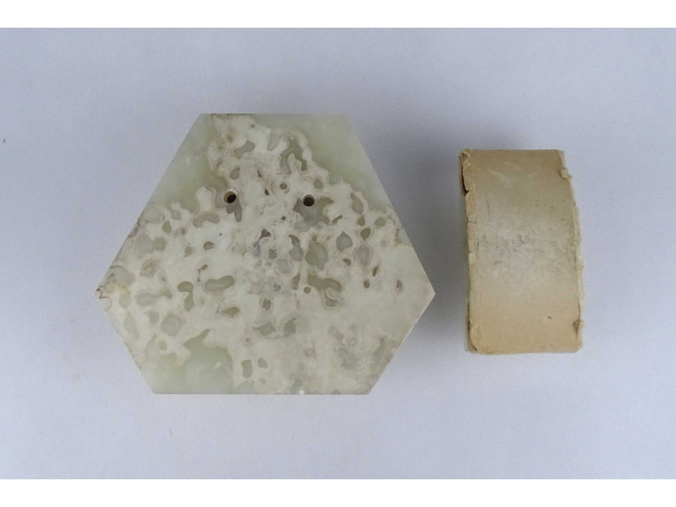 Régi, szép állapotú, fehér márvány kalamáris és tapper, íróasztali kellék készlet.