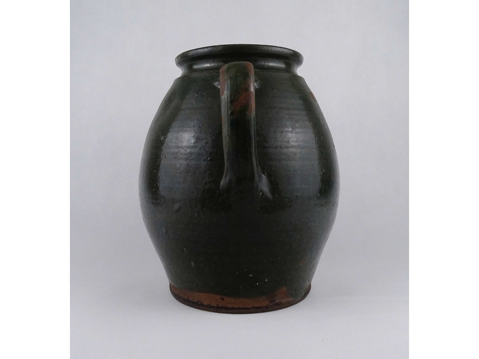 Régi nagyméretű, zöld népi cserép korsó 24 cm