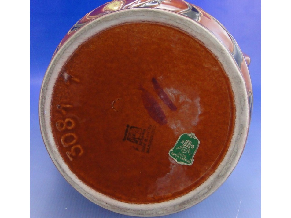Csöcsös kerámia díszkancsó, alján osztrák fekete kerámia jelzéssel, mellette papírvignettás GK monogramos osztrák jelzéssel. Teljesen ép, hibátlan darab.