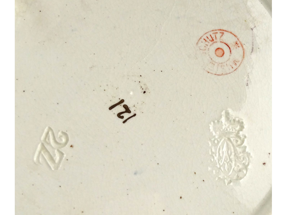 Antik jelzett fajansz dísztányér pár 21 cm MUSTER SCHUTZ