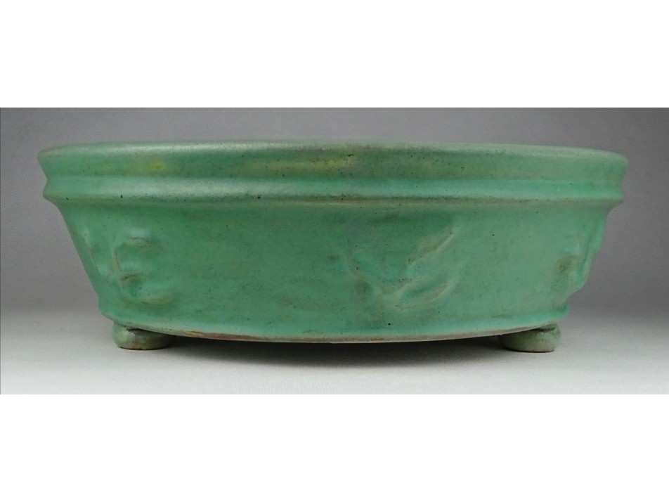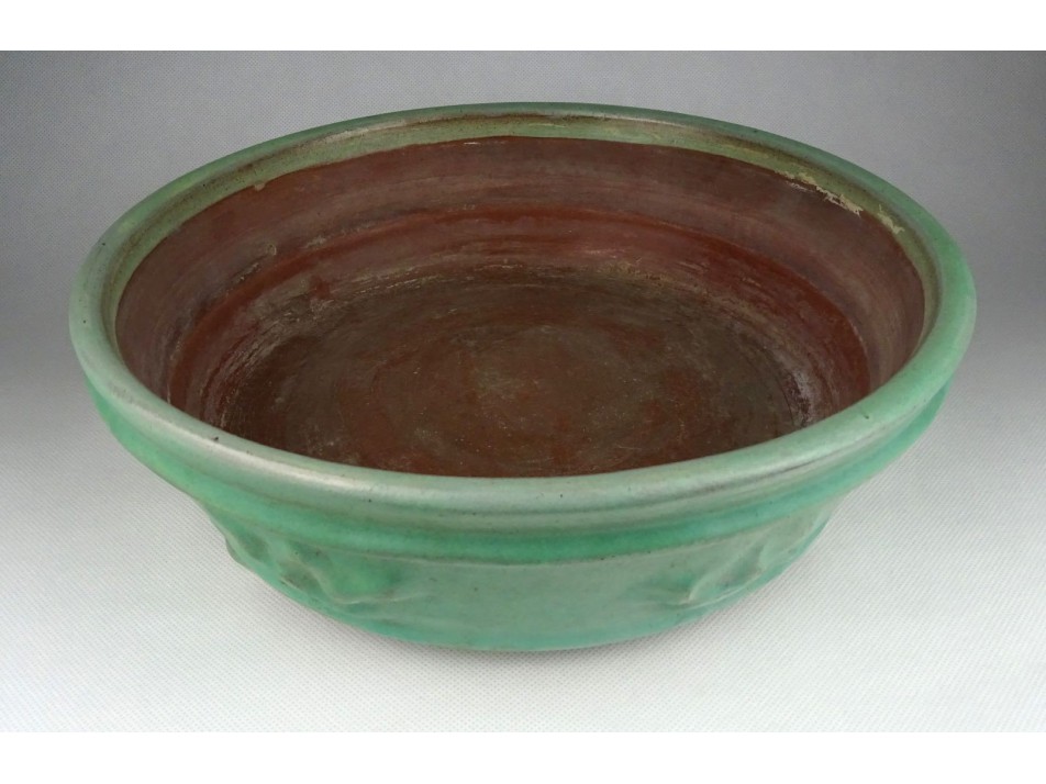 Antik, nagy méretű, jelzett, art deco zöld színű kerámia tál, dísztál.