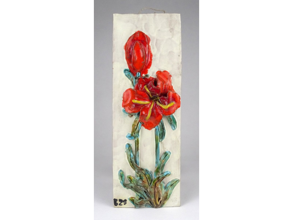 Hibátlan állapotú, mázas kerámia, fali kerámia plasztikus piros virágokkal díszítve. Akasztási lehetőséggel rendelkezik.