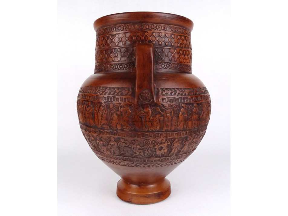 Nagy méretű, gazdagon díszített görög kerámia váza. Talpa ragasztott, lásd fotó.
