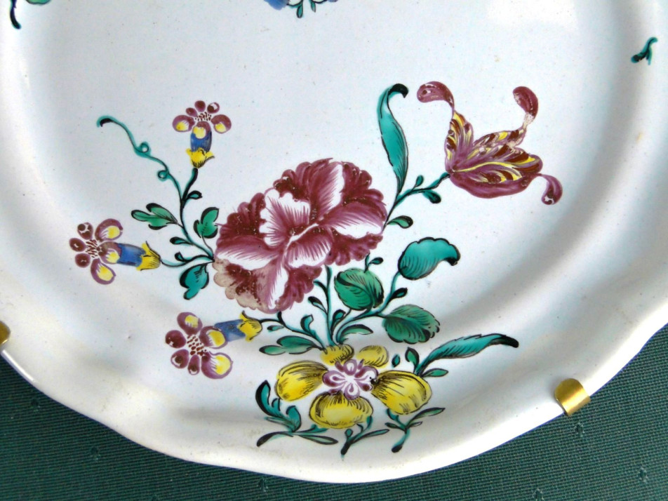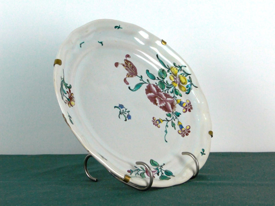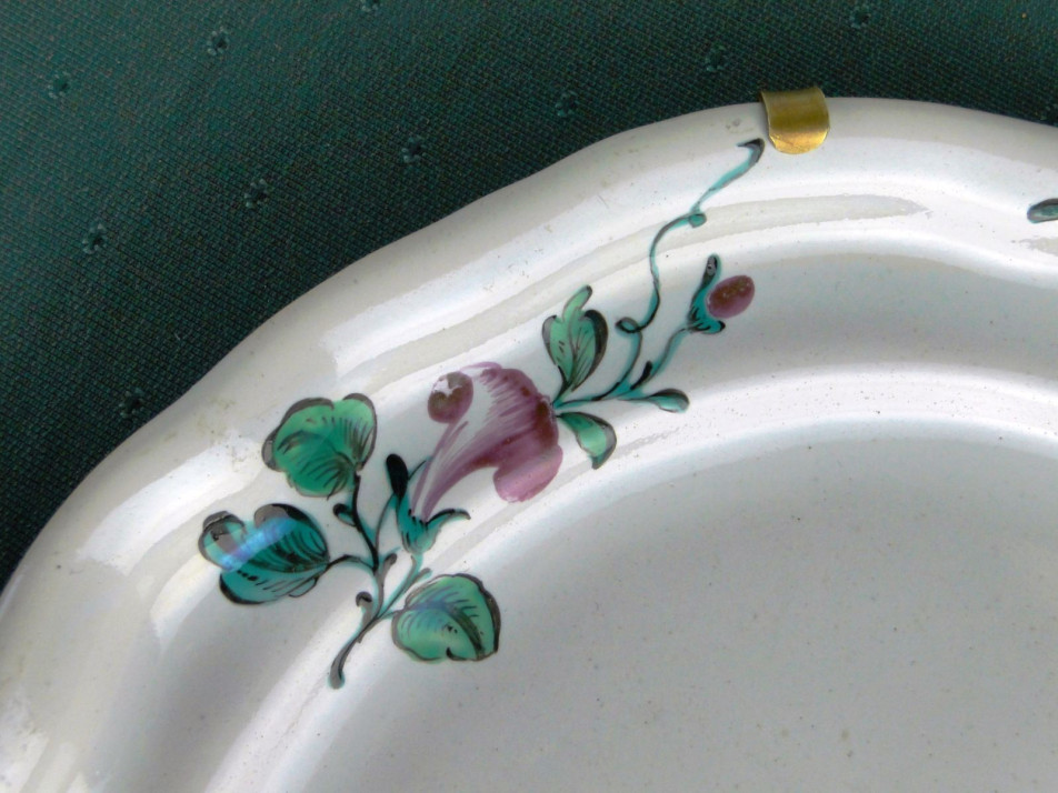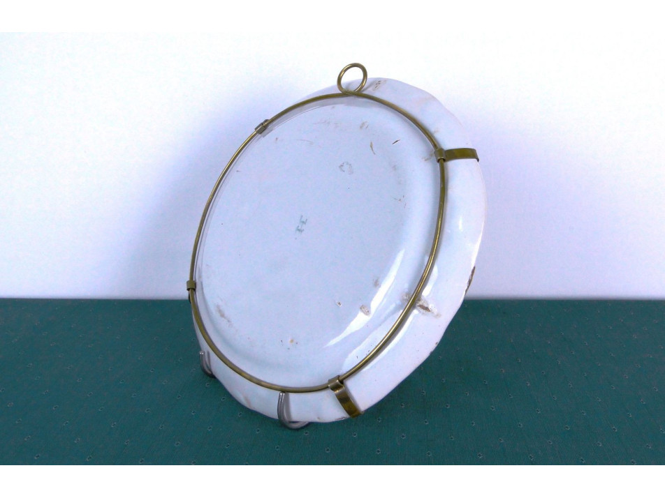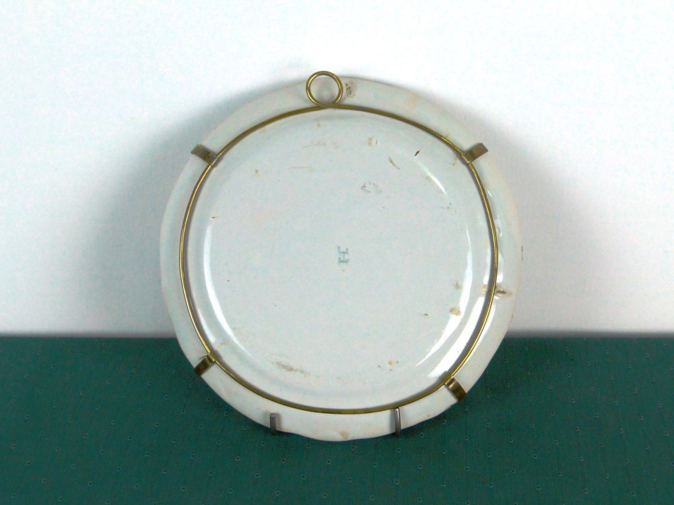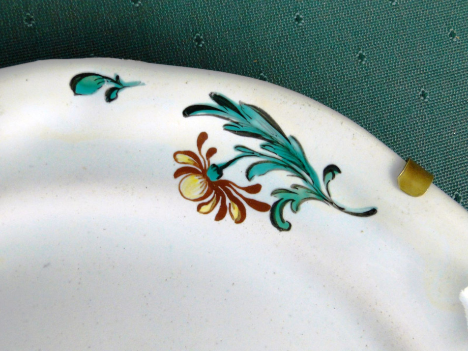 Antik, jelzett Holics virágmintás, pántolt kerámia fali dísz tál, dísz tányér.