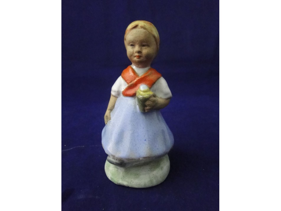 Régi, hibátlan állapotú, jelzett, mázas kerámia kislány figura.
