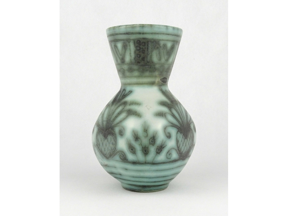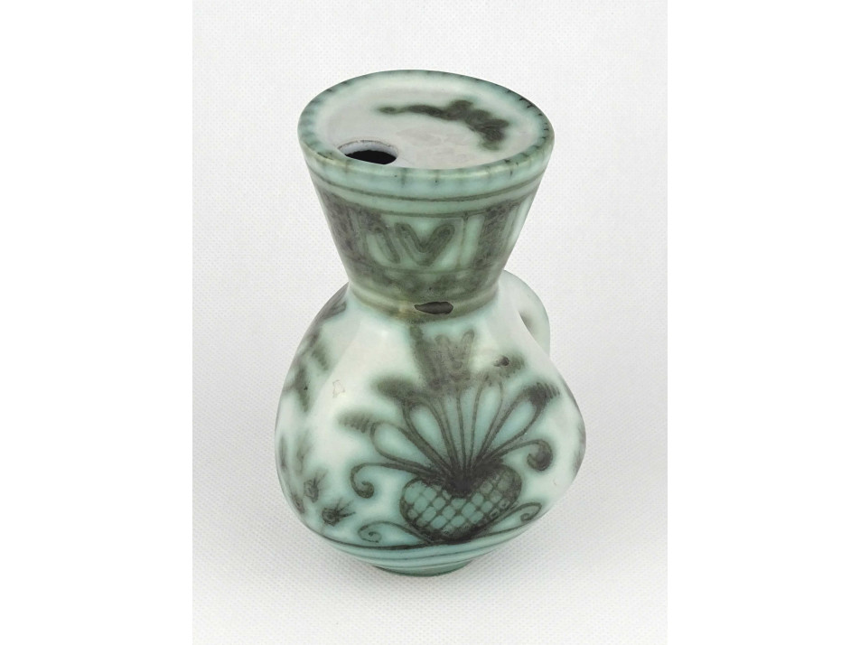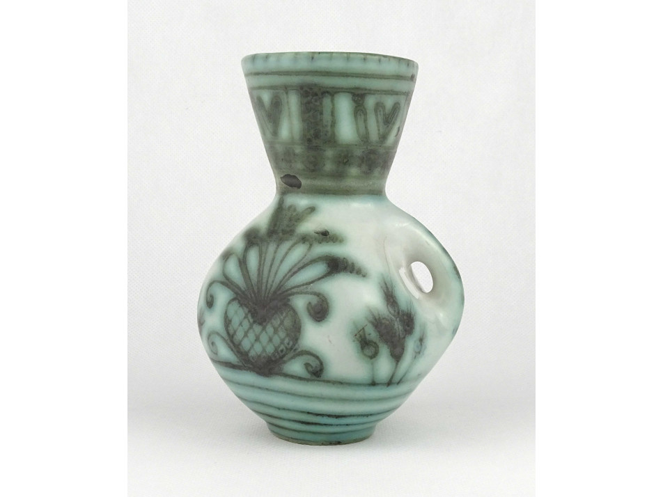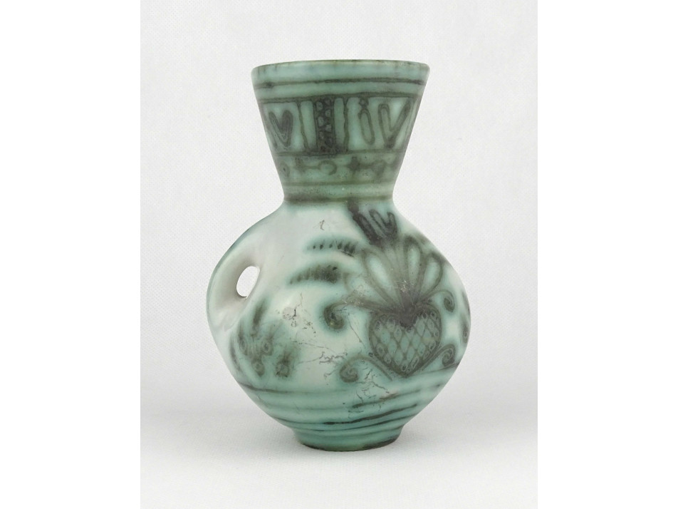Régi zöld mázas Iparművészeti Gorka Géza kerámia kancsó 15.5 cm